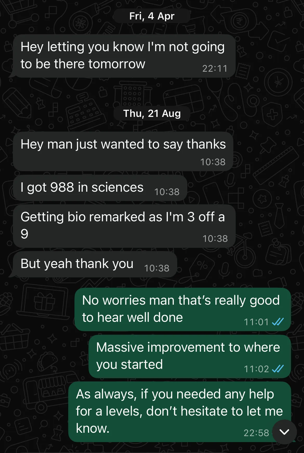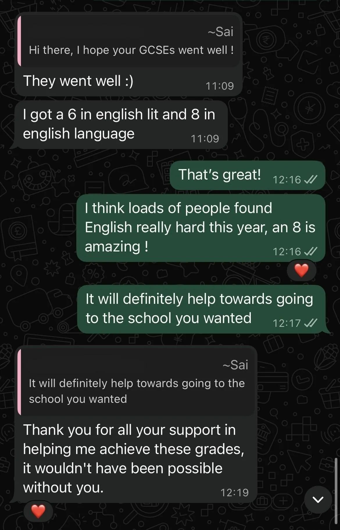 My students’ success is my passion—90% of my GCSE students have achievedlevels 8 or 9, and 83.3% of my A-Level students have secured A or A*.