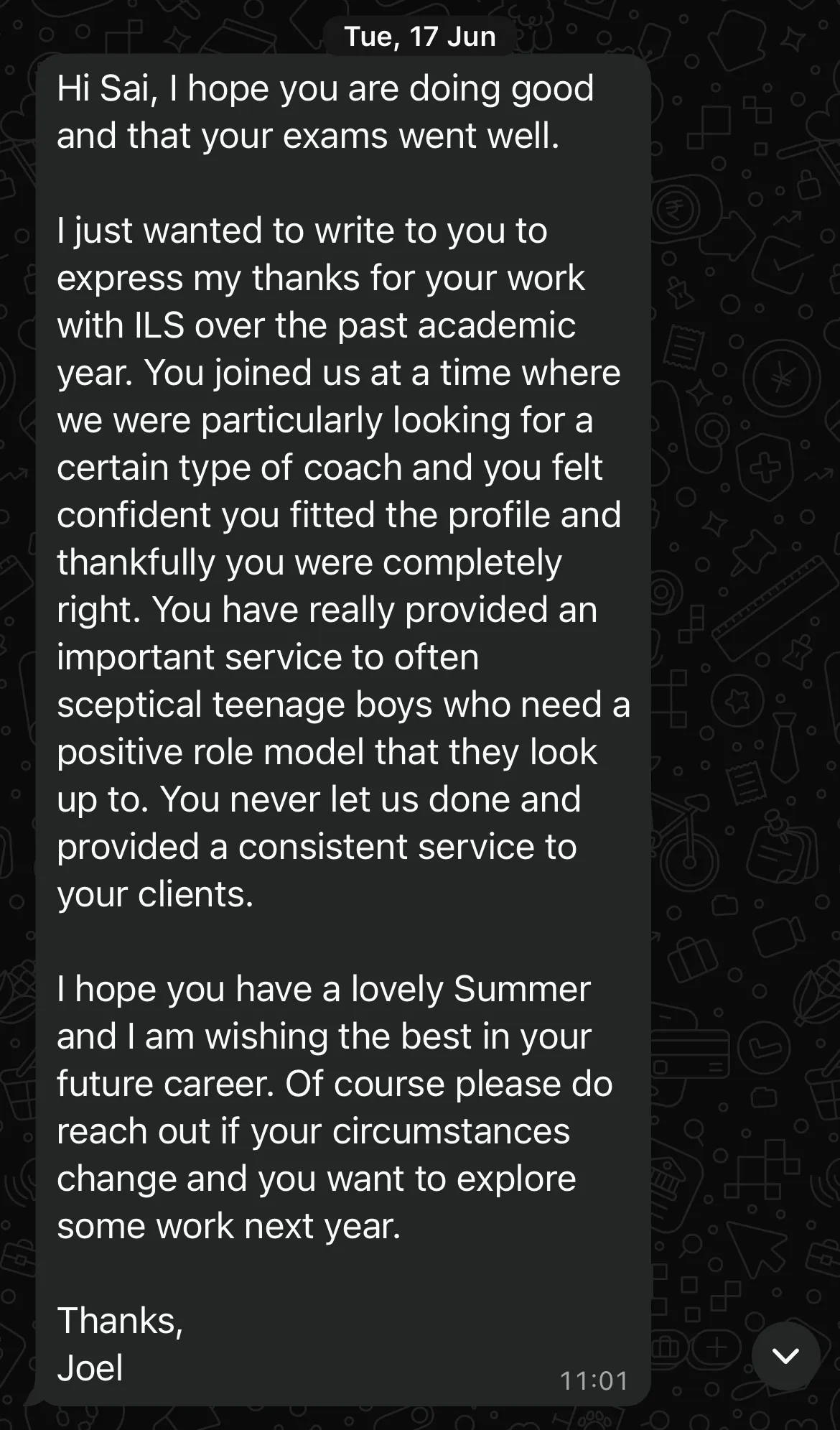 I’ve been tutoring for over six years, accumulating more than 750 hours of experience. I’m also proud to be a panelist for Bristol Medical School interviews in 2025.